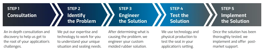 Our first priority is your satisfaction. We believe that comes from an effective, long-lasting seal and an outstanding experience. One way we ensure you have the best experience is by providing a pre-production sample of our custom molded rubber parts.